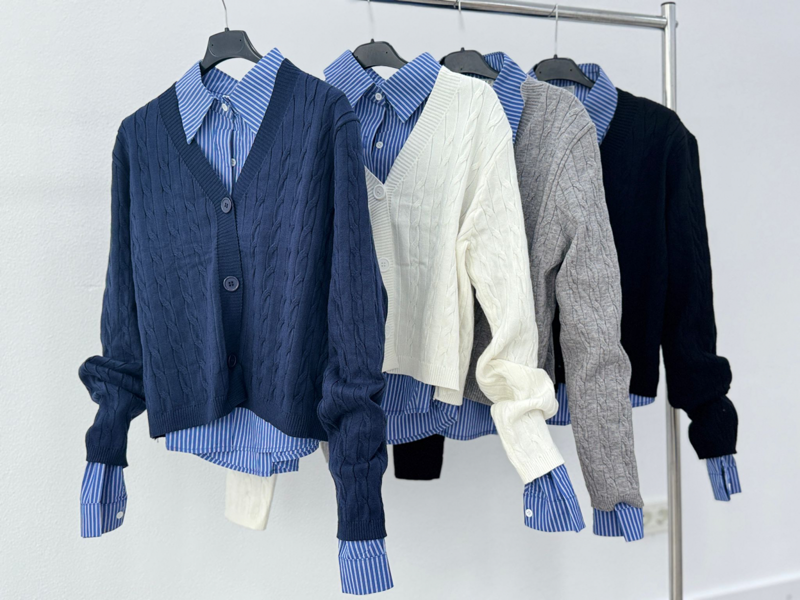 Set format din două piese individuale camașă/pulover, disponibil în 4 nuanțe