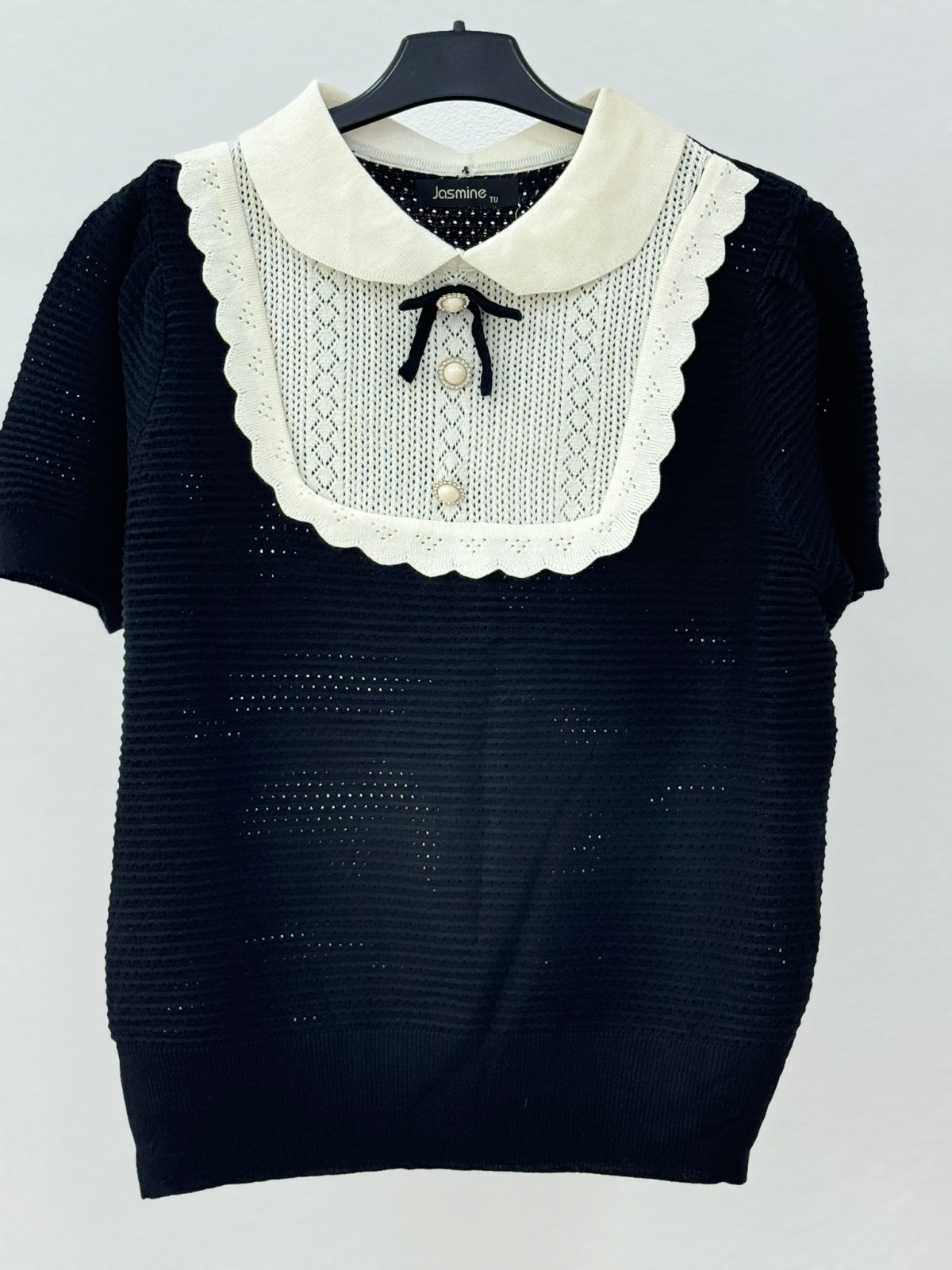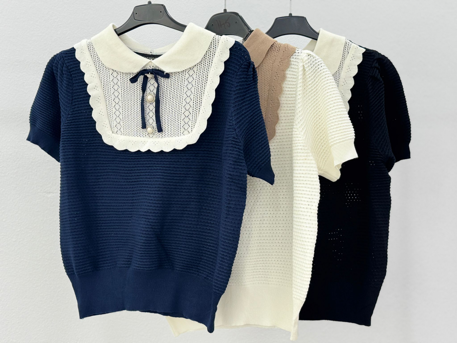 Pulover bumbac accesorizat cu funtiță, disponibil în 3 nuanțe.