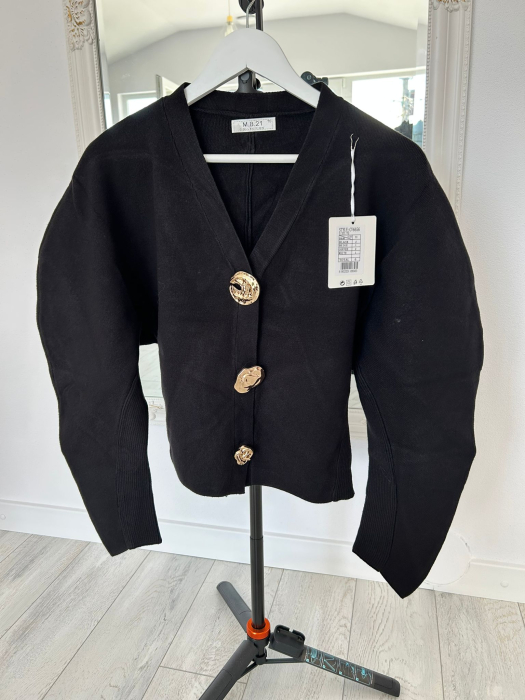 Pulover bumbac premium, accesorizat cu nasturi tip bijuterie.
